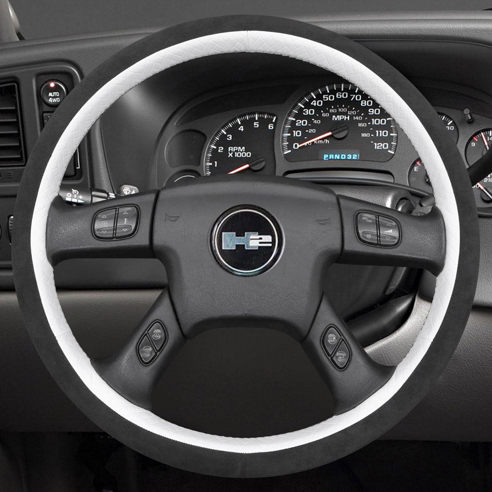 Our suede material features a soft, velvety texture that feels comfortable to the touch. It provides a stable, breathable grip and adds a clean, sporty look to your steering wheel interior.